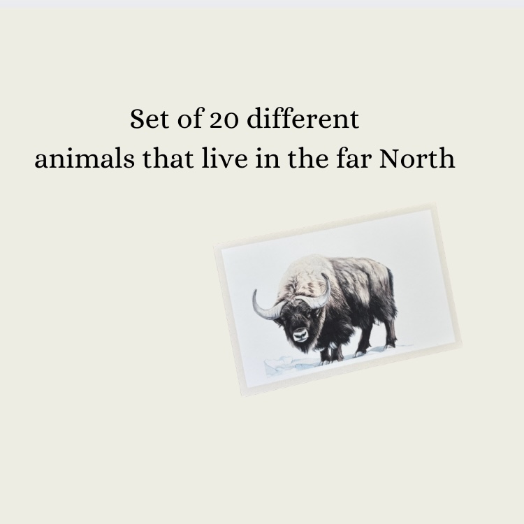 This toddler-sized language card set features 20 different wildlife that are found in the far Norther regions of the US. Â (Specifically: Northern and interior Alaska)it is built to last with sturdy 10-mil lamination and rounded corners. Â Each card features a clear image with the name printed on the back for consistency among adults. Â Skip the hours of researching, formatting, cutting, and laminating – this ready-to-use set saves you time and instantly elevates your language area.
