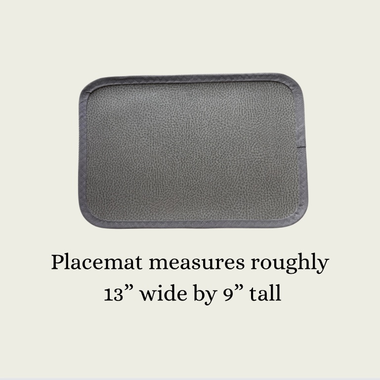 each placemat comes blank for flexibility, yet can be easily customized – simply trace outlines for cup, plate, utensils with a marker if desired.