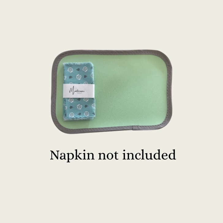 Crafted from child-safe marine vinyl, each placement is edged in cotton and features a raised edge that helps contain spills, keeping water and milk from spreading across the table. Â This thoughtful design provides time for children to wipe their spills before it is absorbed into he tablecloth, Â supporting independence and care for their environment.